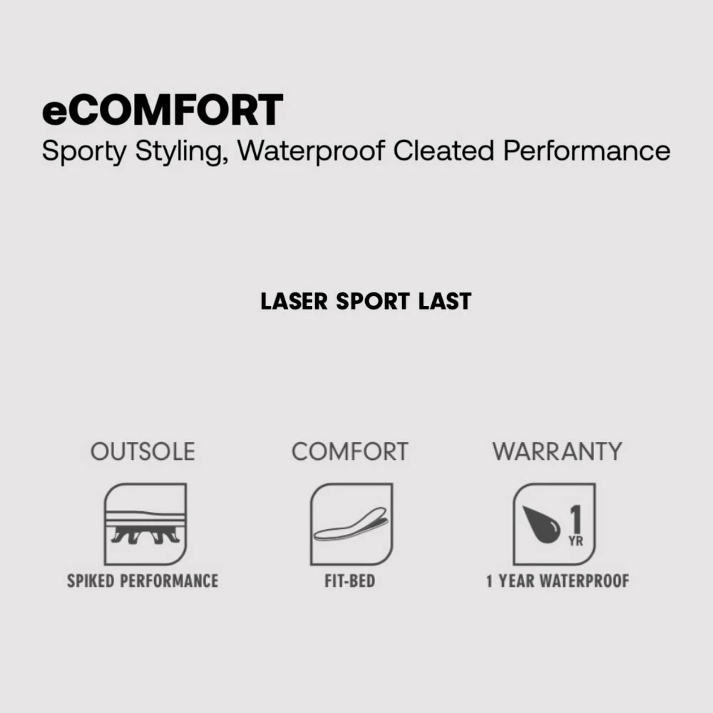 The FootJoy eComfort Men’s Golf Shoes offers the golfer both sporty styling with waterproof cleated performance.Â