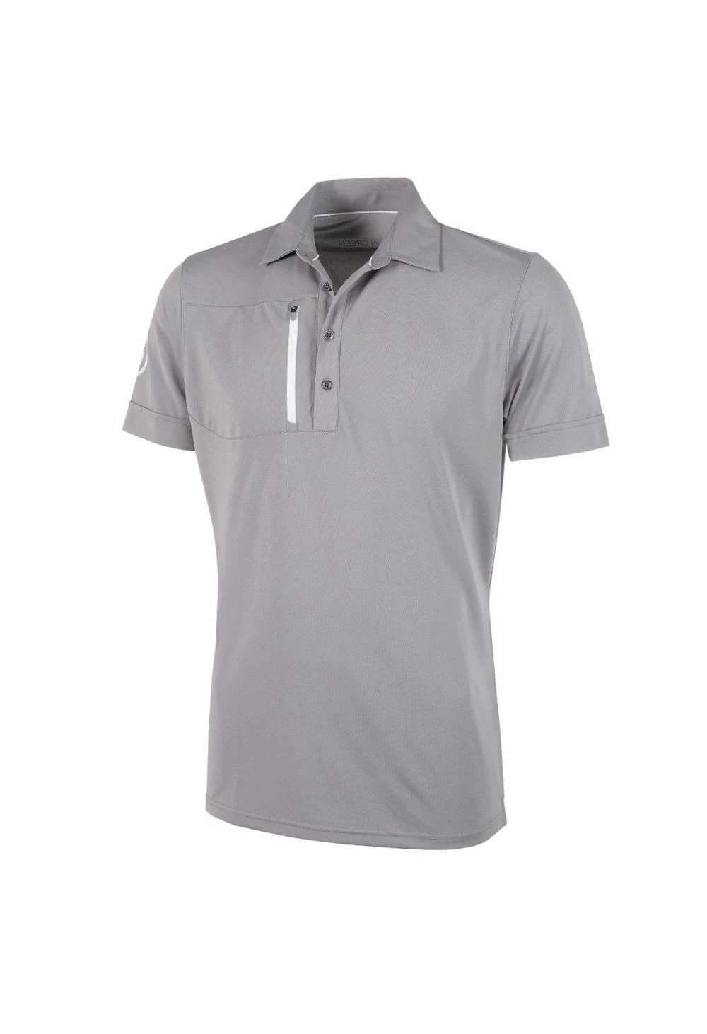 For high performance and style on the golf course look no further than the Galvin Green Morton V8+ Golf Shirt. In sharkskin grey with a contrasting white zipper, this shirt features a large Galvin Green logo on the right sleeve in pixel design for a modern, trendy look.Â