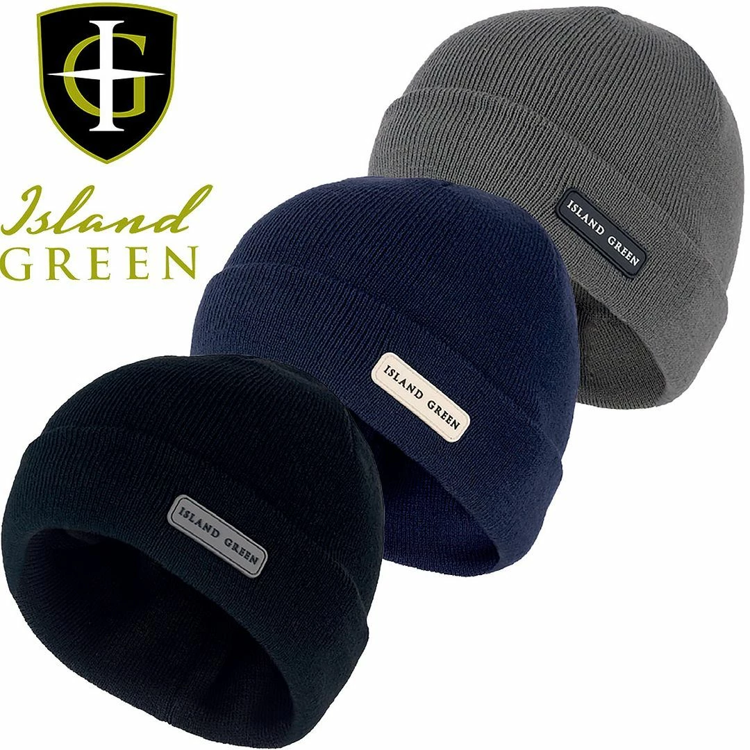 Island Green Mens Knitted Pull On Windproof Themal Winter Golf Beanie Hat