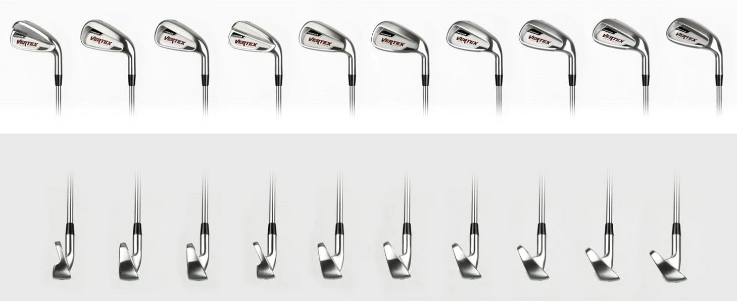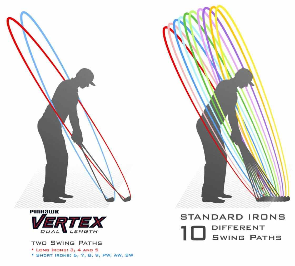 - Introducing the Pinhawk Vertex Dual Length Irons! A "Vertex" in math is defined as “a point where two lines meet”, and that is the perfect name to describe these irons. They combine the best of both worlds for the ultimate in consistency: Not completely single length, and not traditional length. Instead, just two different lengths: the 3, 4 and 5 irons one length, and the 6, 7, 8, 9, PW, AW, SW another one length. This configuration results in no distance loss in the long irons and the full benefits of single length irons in the “short” set (6-SW). 2 different lengths, and just 2 swing planes, vs many planes in a traditional set.